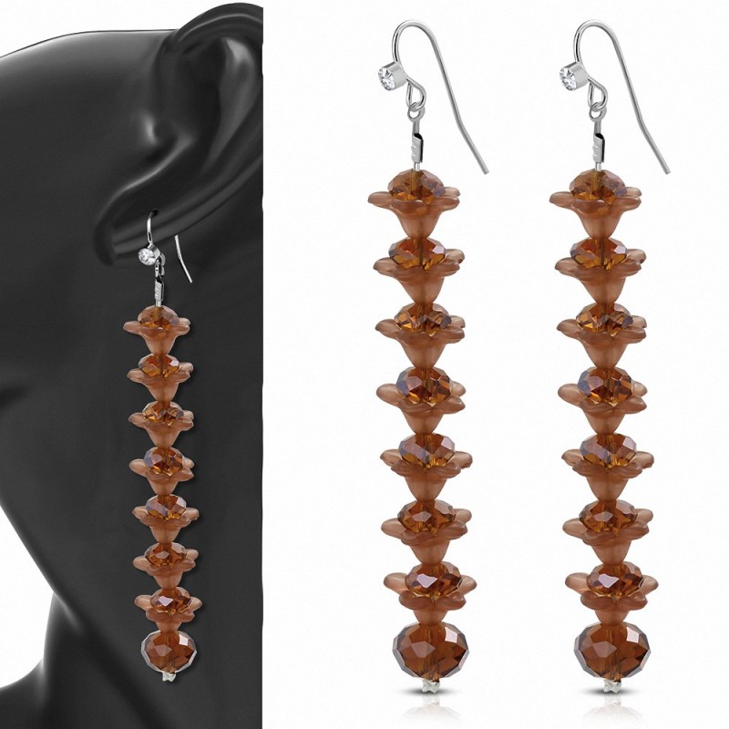 • Boucles doreilles en alliage fantaisie marron avec perle longue et crochet avec cz incolore (paire)