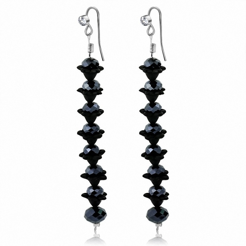• Boucles d'oreilles en alliage de perles noires à la mode en forme de perles noires et de fleurs avec paire en zircone
