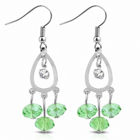• Boucles d'oreilles avec crochet en alliage tendance à perles vertes et bohème - CZ transparent (paire)