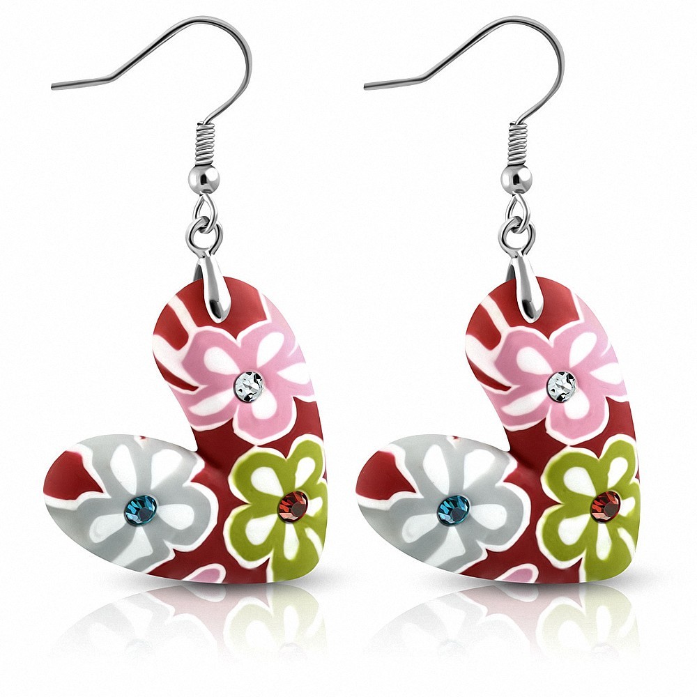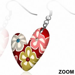 • Boucles d'oreilles en alliage de fimo / argile polymère en forme de coeur fleur avec crochet en zirconium coloré (paire)