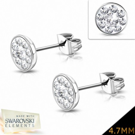 4.7mm | Boucles d'oreilles à boutons et pavé de fleurs en acier inoxydable avec cristaux   (paire)