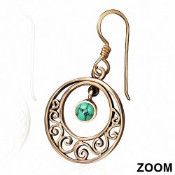 • Boucles d'oreilles à crochet mode et cercle concentrique en bronze avec pierre turquoise (paire)