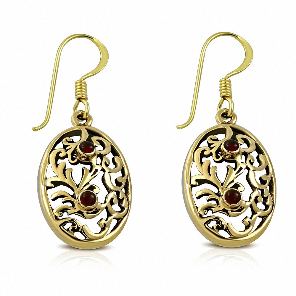 Boucles d'oreilles à crochets ovales en forme de goutte de vigne en bronze à la mode en bronze avec agate rouge (paire)