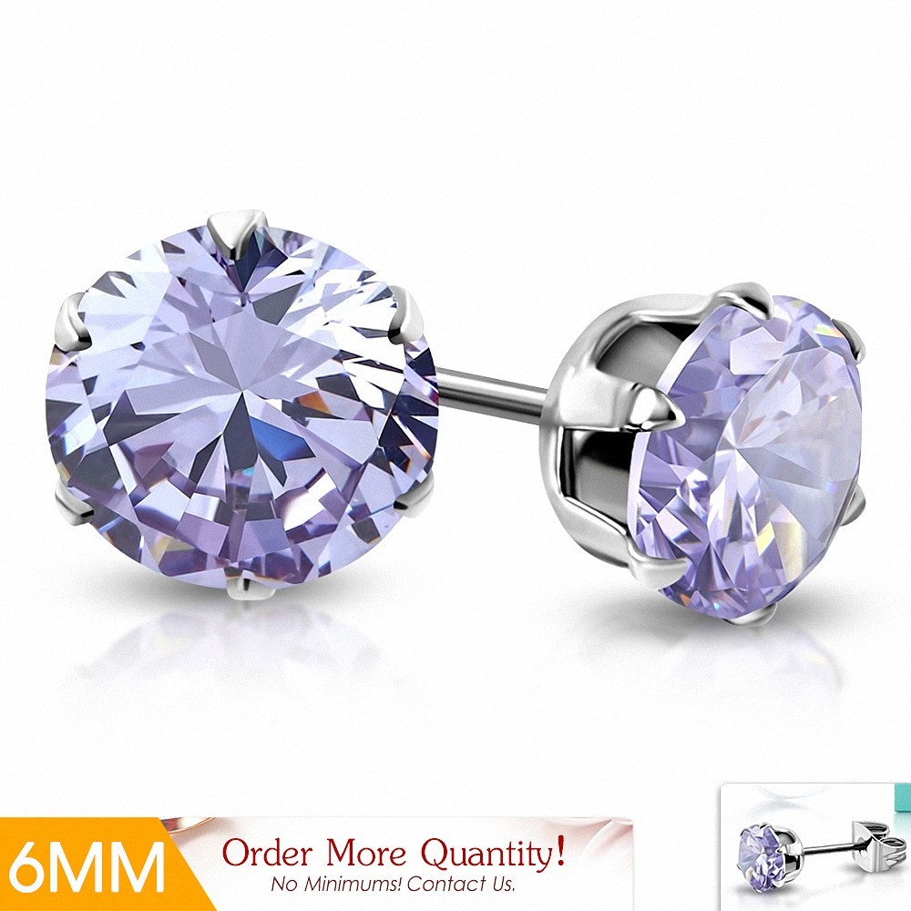 • Paire de boucles d'oreille acier pierre zirconium tanzanite 6 mm