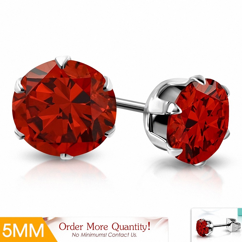 • Paire de boucles d'oreille acier pierre zirconium rouge 5 mm