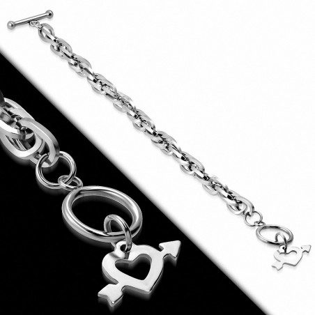 Bracelet en acier inoxydable liens elliptiques avec charm coeur et flèche