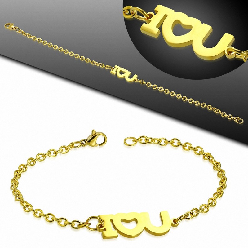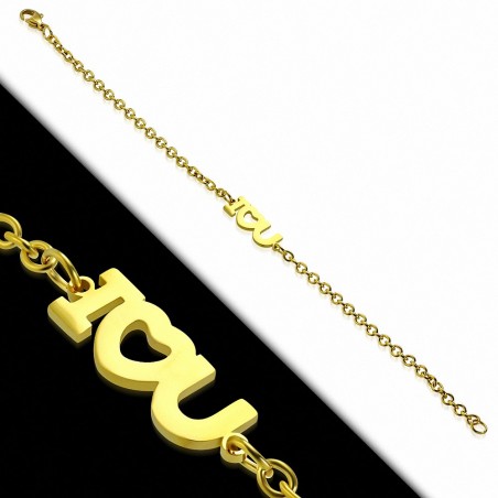 • Bracelet en mailles en forme de coeur avec monogramme en forme de coeur en acier inoxydable doré
