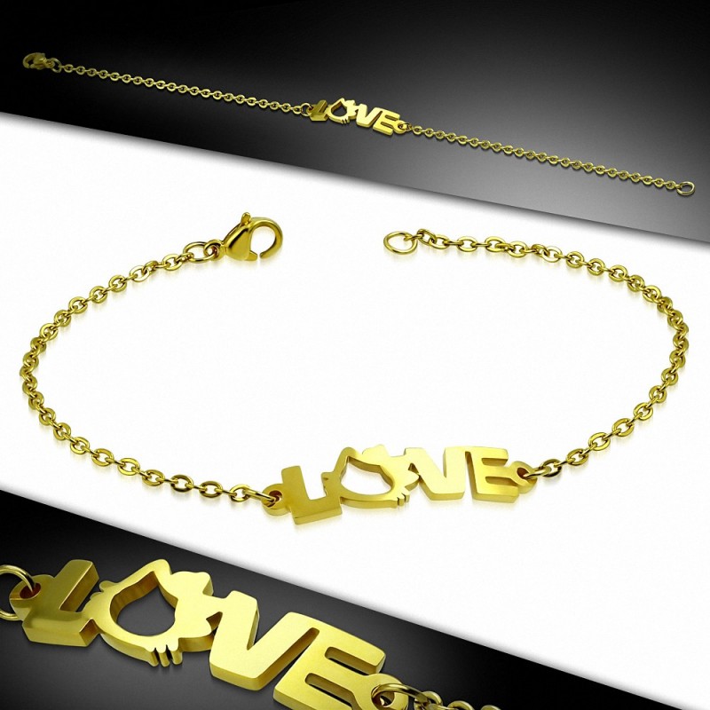 • Bracelet chaîne en maillons de montre de style montre monogramme d'amour en acier inoxydable doré