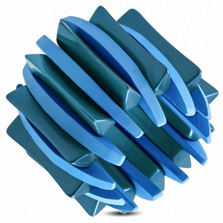 • Bracelet jonc tendance en bois et acrylique stretch bleu marine