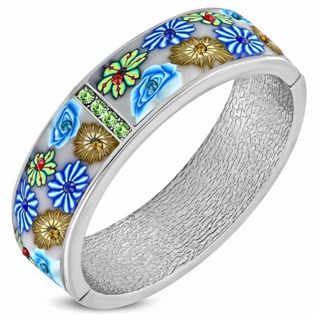 Bracelet à charnière à fleurs en alliage de fimo argile polymère à la mode en alliage coloré avec CZ coloré