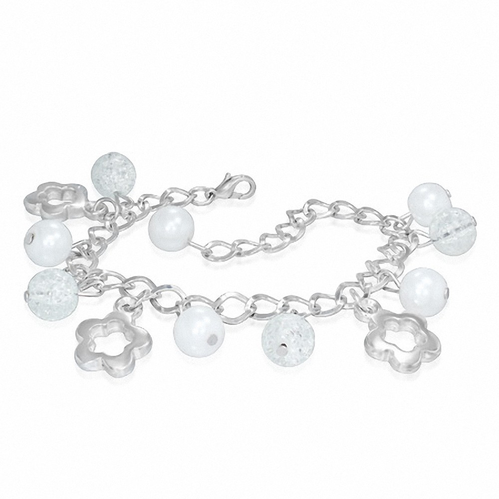 Alliage de mode blanc perle verre perle boule étoile fleur charm lien chaîne bracelet