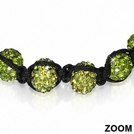 • Bracelet ajustable en corde hermite et 9 ballons Argil Disco Shamballa noirs avec Olivine pâl