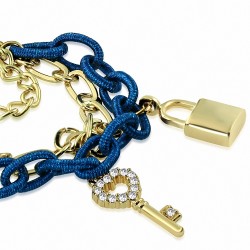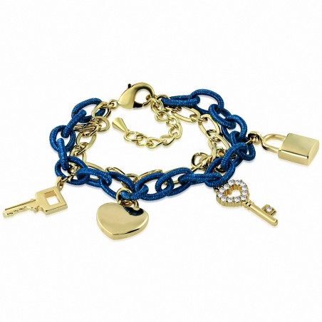 • Bracelet en alliage de mode doré avec cordon bleu et cœur en alliage