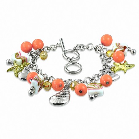 • Alliage de mode fantaisie perle de verre orange rose fleur charm marin bascule Bracelet