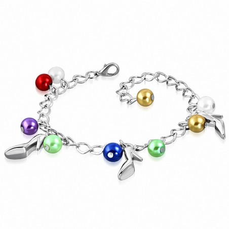 • Alliage de mode coloré perle de verre perle dame chaussures chaine maillon de charm bracelet