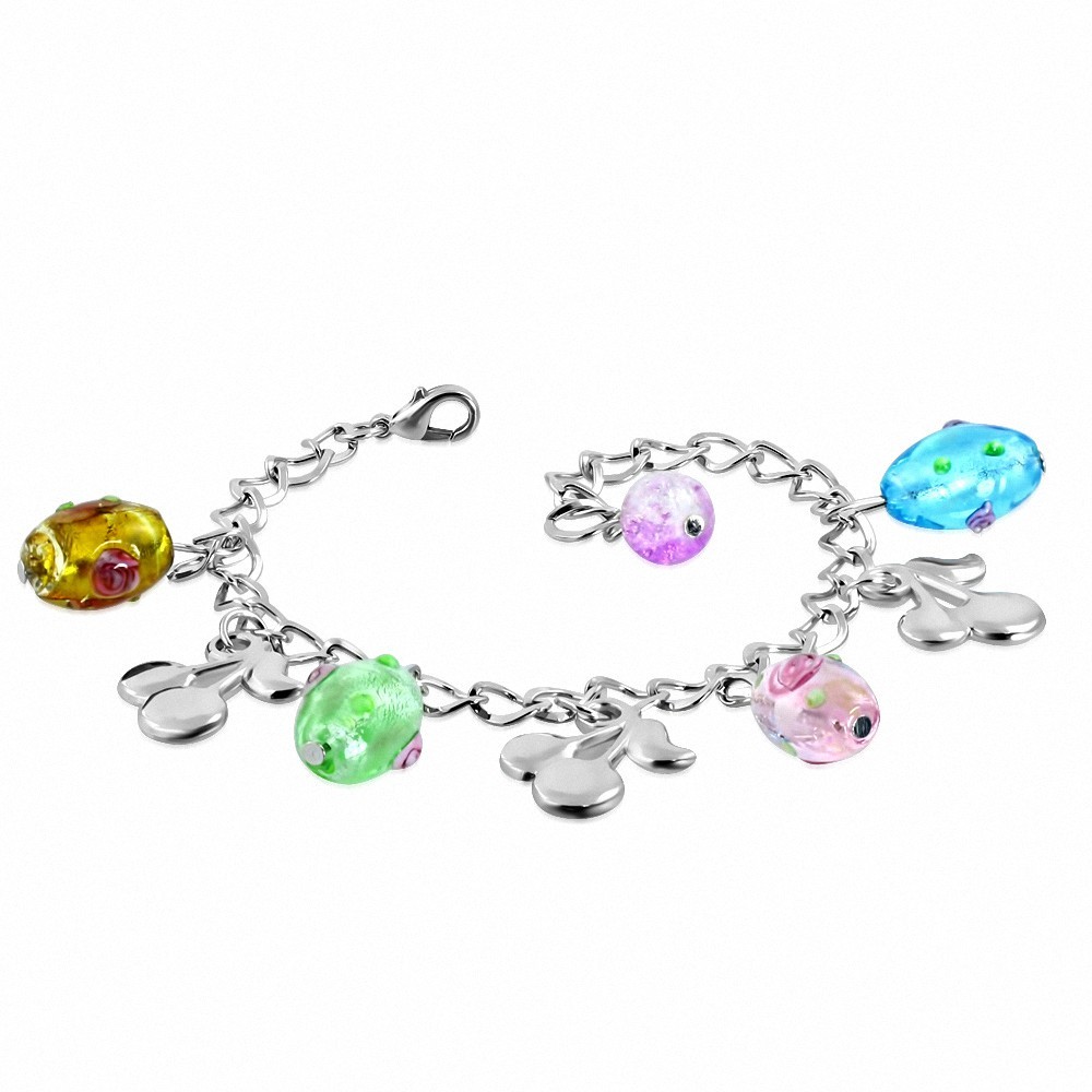 Alliage de mode bracelet en perles de verre coloré fleur charm cerise lien