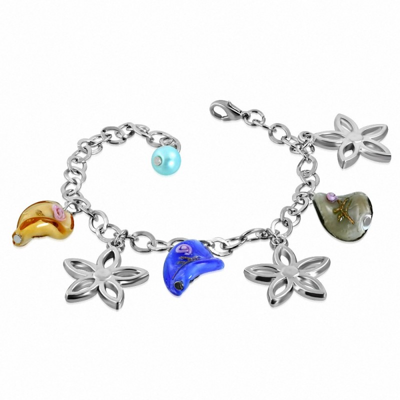 • Alliage de mode bracelet en perles de verre coloré fleur feuille charm lien chaîne