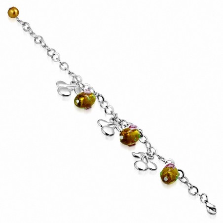 Bracelet en alliage de mode en perles de verre avec fleur, cerise et cerise