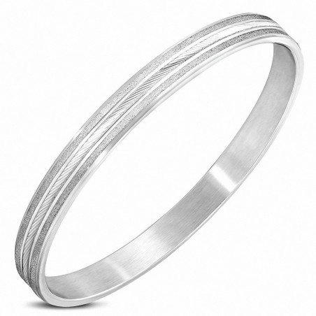 DIA-70mm x 8mm | Bracelet plat rainuré acier inoxydable à rayures sablées