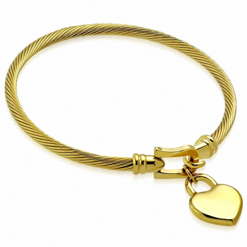 Bracelet à breloques coeurs en forme de fils torsadés celtiques acier inoxydable doré