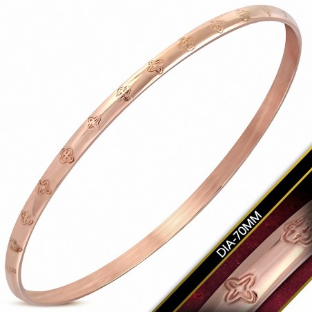 • DIA-70mm x 3.5mm | Bracelet jonc rond et rond en forme de fleur gravée en acier inoxydable plaqué de couleur d'or rose / rose