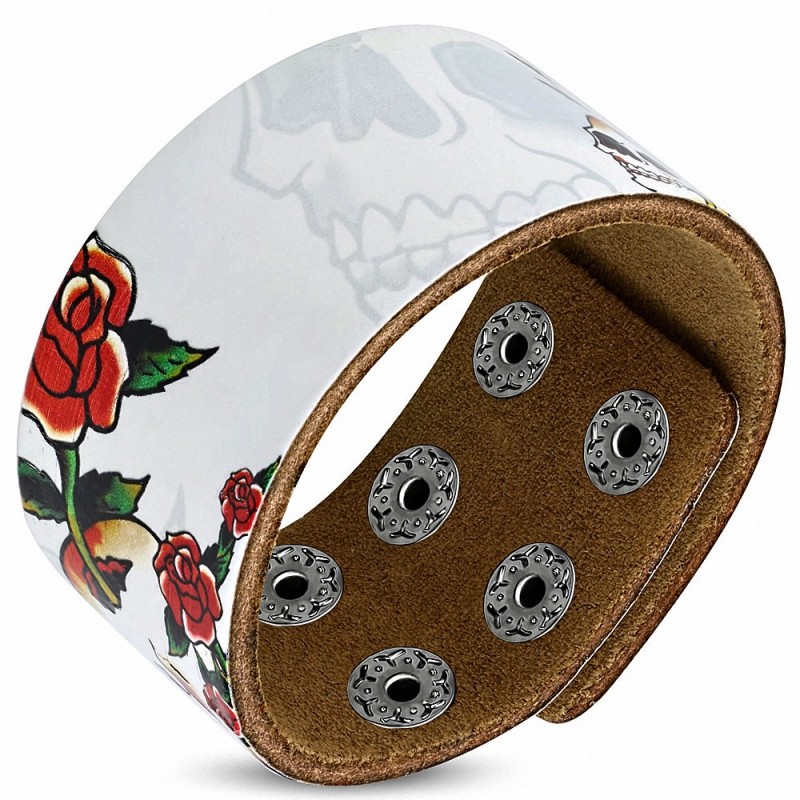 • Bracelet motard en cuir à la mode avec  Skull Rose Paint Design - BHY027