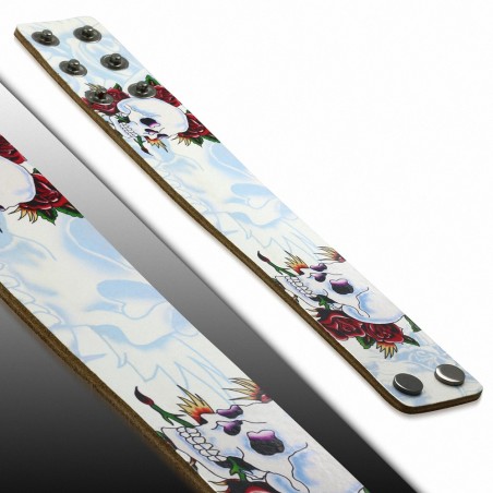 • Bracelet motard en cuir à la mode avec  Skull Rose Paint Design - BHY052