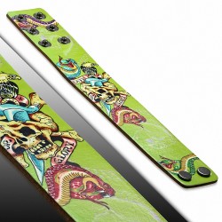 • Bracelet en cuir à la mode Snap Biker  Pirate Skull Snake Eagle Paint Design - BHY076