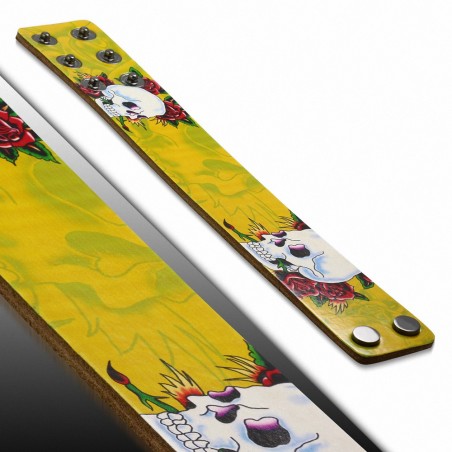 • Bracelet motard en cuir à la mode avec  Skull Rose Paint Design - BHY068