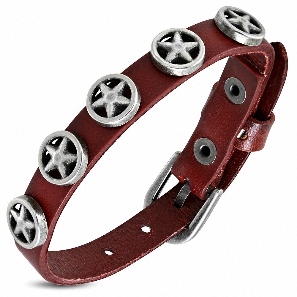 Bracelet boucle de ceinture en cuir rouge avec cercle étoilé