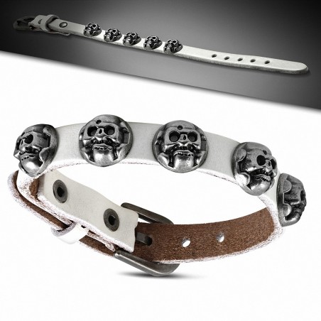 Bracelet motard en cuir véritable cercle blanc tête de mort avec boucle de ceinture