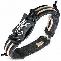 Bracelet en cuir avec breloque fantaisie en forme de fleur de perle de shamrock en bois de Bali réglable rouge clair