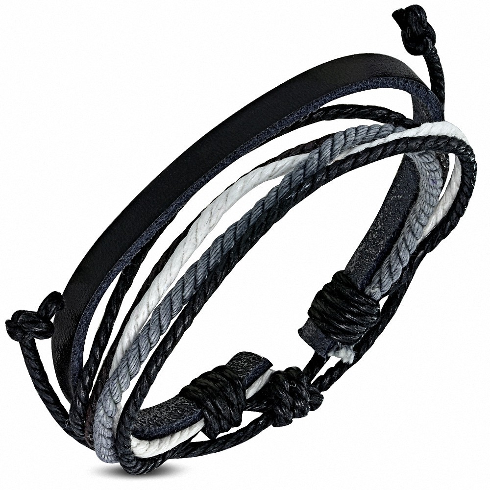 Bracelet ajustable en cuir noir avec cordelette fantaisie à la mode - FWB049