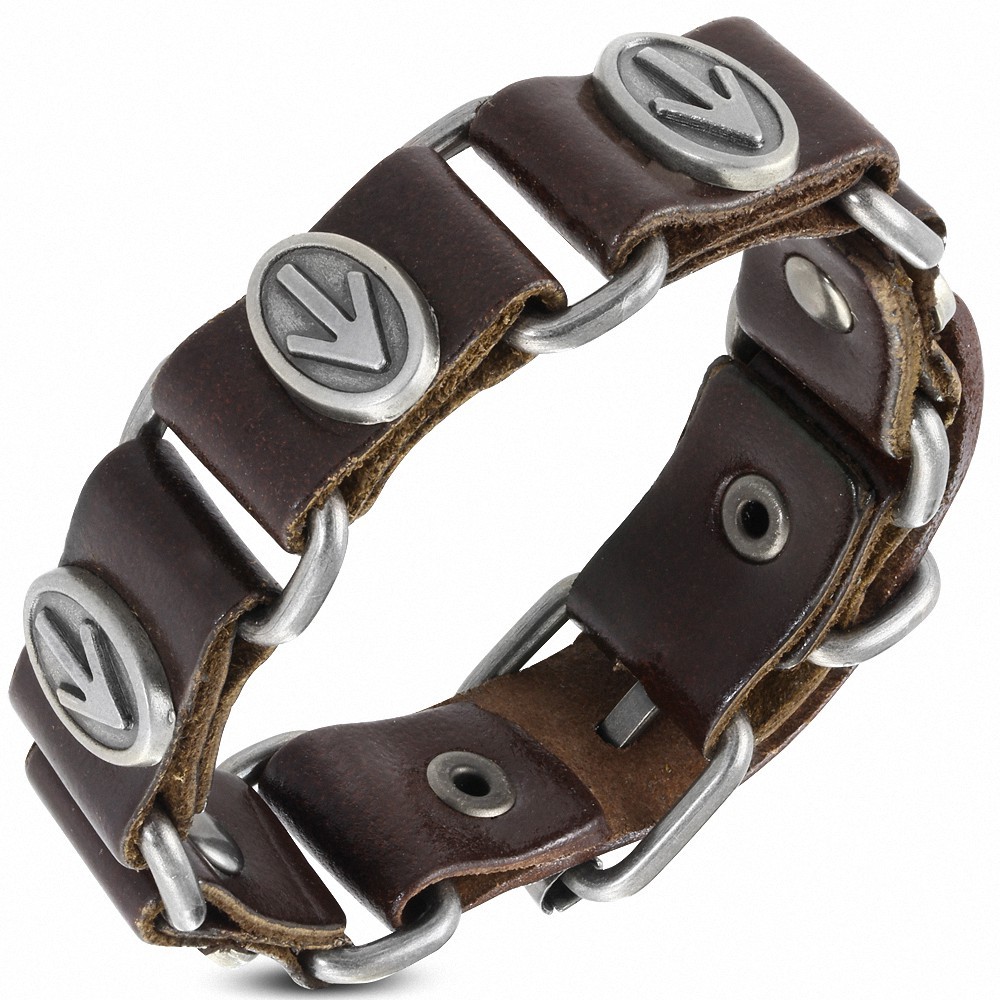 • Bracelet motard flèche en cuir marron véritable flèche ovale avec boucle de ceinture