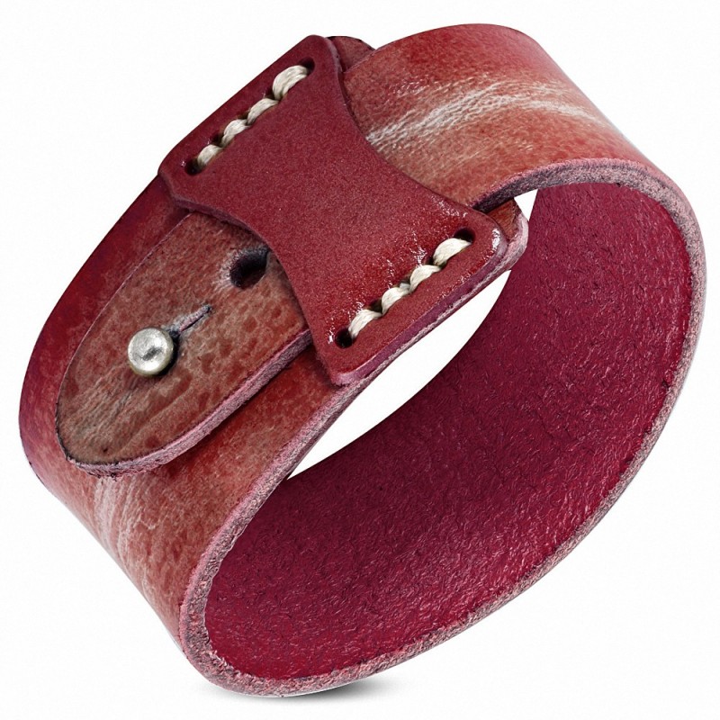 • Bracelet pression en cuir rouge à rayures brumeuses