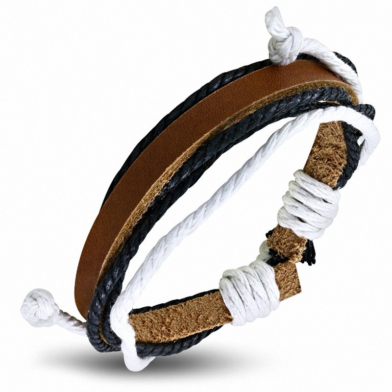 Bracelet ajustable en cuir marron avec cordon multicolore à la mode - FWB204