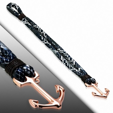 • Bracelet en alliage de mode et peinture PU en cuir rose doré rose Bracelet à ancre marine