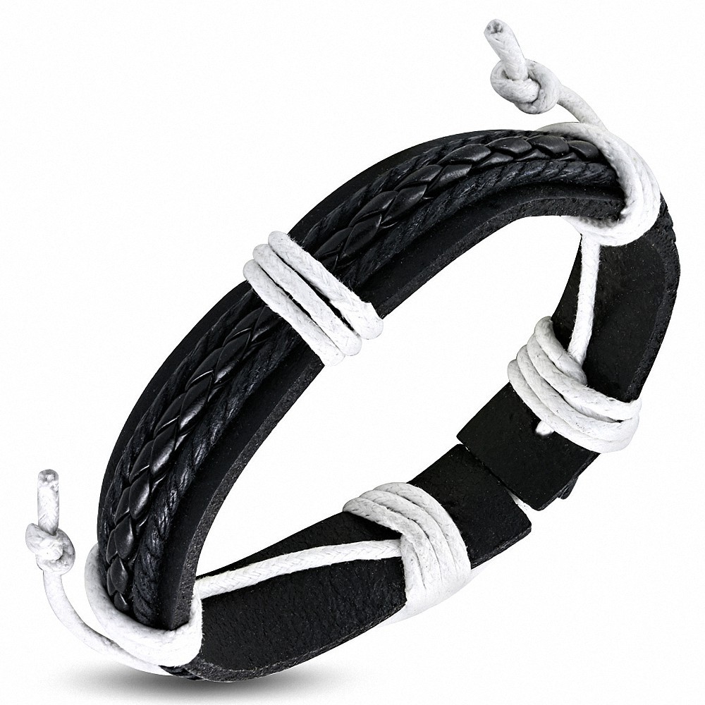 Bracelet fantaisie pour homme en cuir noir et blanc..