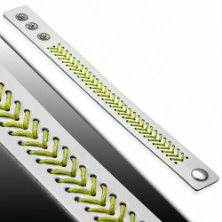 Bracelet fantaisie unisexe en cuir blanc orné de chevrons en corde jaune.