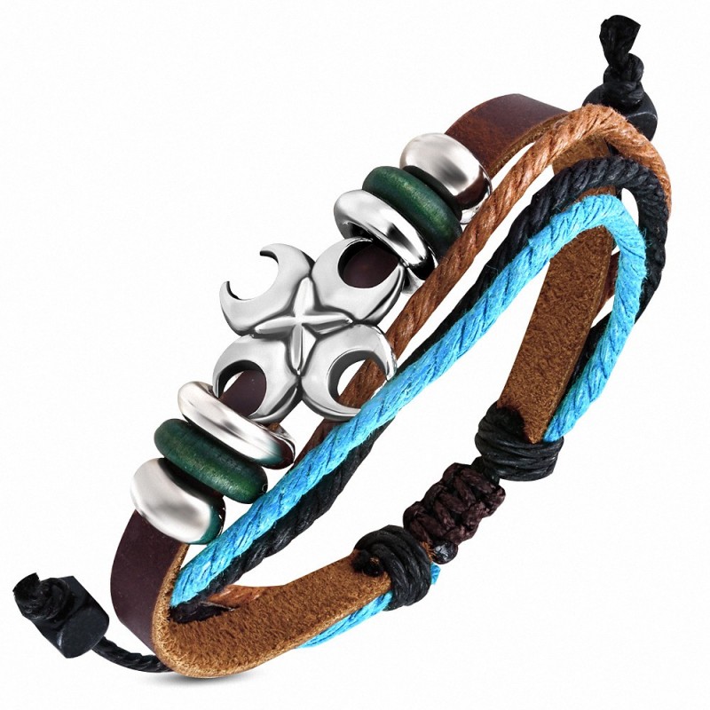 • Bracelet en cuir marron perles de Karma croissants de lune