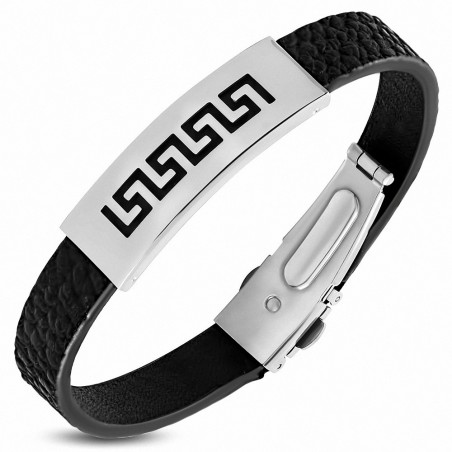 • Bracelet homme caoutchouc noir plaque clé grecque