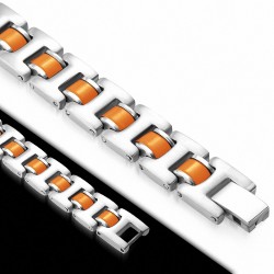 Bracelet à maillons panthère en acier inoxydable avec caoutchouc orange 426
