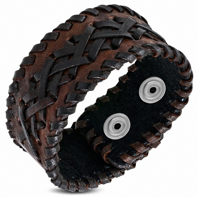 Bracelet en cuir véritable marron à armatures croisées croisées croisées
