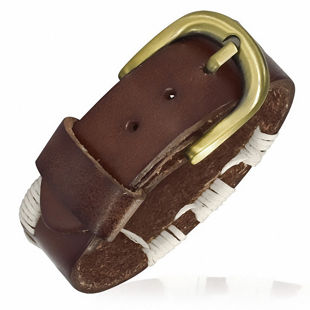 Bracelet en cuir marron avec boucle de ceinture et rivets laitonnés