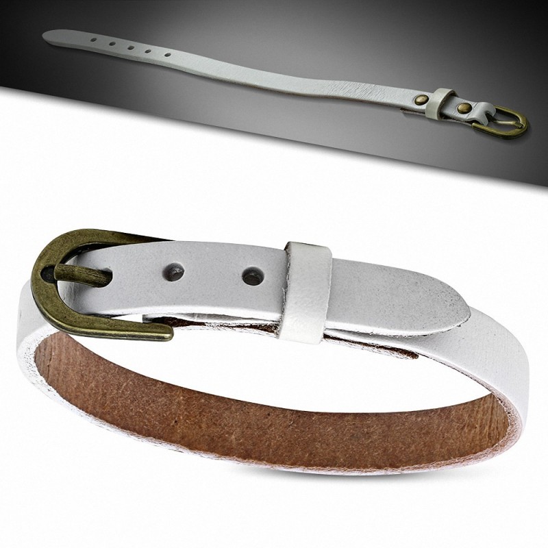 Bracelet avec boucle de ceinture en cuir blanc véritable