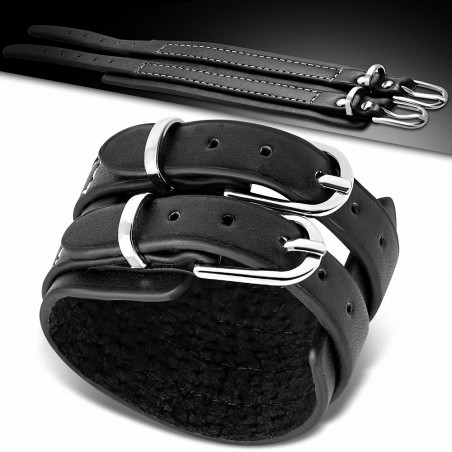 • Bracelet en cuir véritable double boucle avec boucle de ceinture