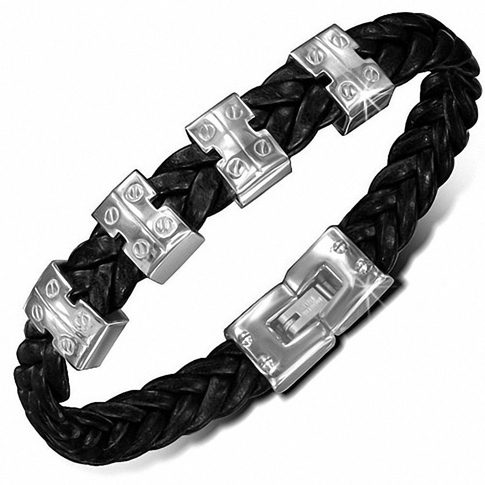 • Bracelet en cuir noir avec tube à vis en acier inoxydable