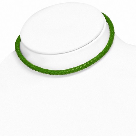Bracelet en cuir vert tressé avec fermeture magnétique 40 cm x 6 mm