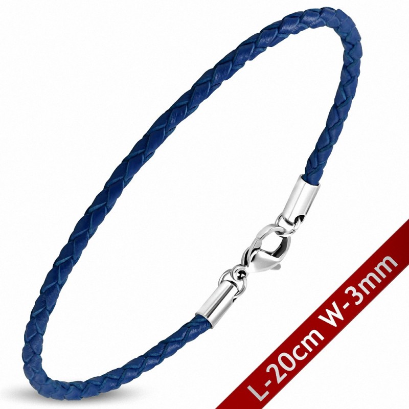 • Bracelet en cuir bleu tressé avec fermeture par pince 20 cm x 3 mm