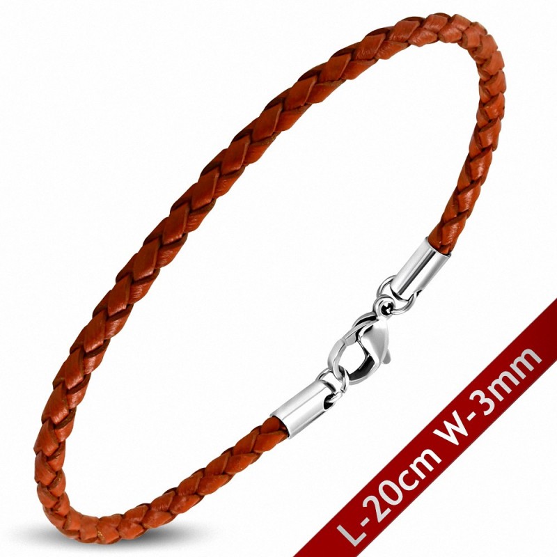 • Bracelet en cuir orange tressé avec fermeture par pince 20 cm x 3 mm